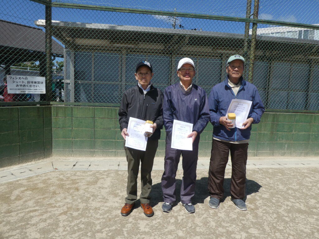 - 年間優秀アベレージ賞 男子の部(左から3位竹中昌夫さん、1位谷克己さん、3位石角鬼太郎さん)