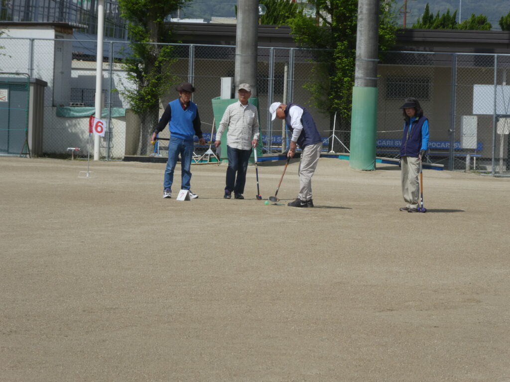今回より、ハンディキャップが過去2回のハンディー持ち越しに変更され、また、参加者も8ホール×4ゲームの形式に代わってから初めて32を超える34名の方が参加。久しぶりに1チーム5名もでき、久しぶりに活気のある競技会となりました。