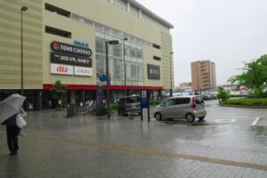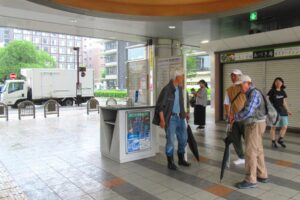 - 駅前広場は、雨のため歩道が大変滑りやすく成っています!