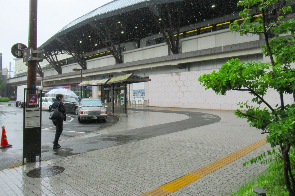 - 駅前広場は、雨のため歩道が大変滑りやすく成っています!