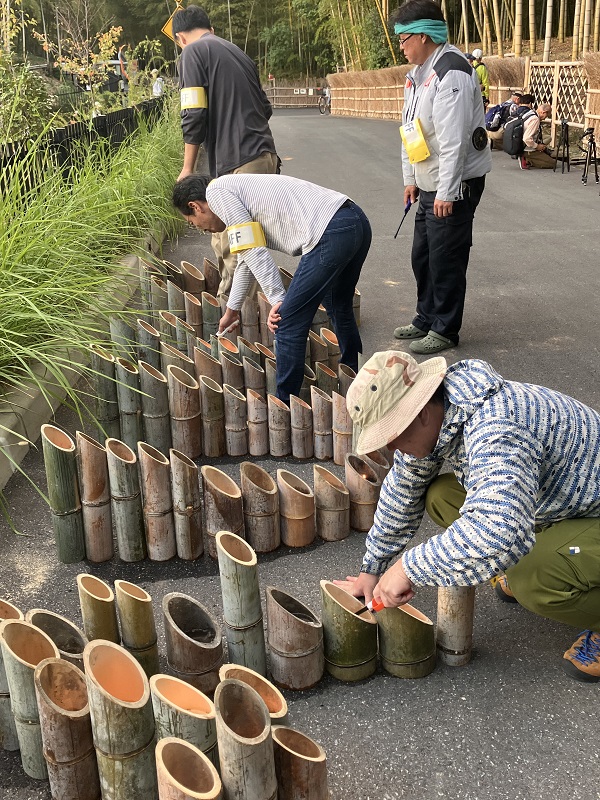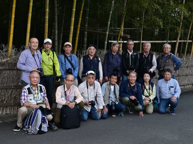 10月12日(土)竹林のライトアップを狙い会員15名が参加し、京都市洛西竹林公園で開催された「かぐやの夕べ」で撮影会を開催しました。当日は午後4時30分に竹林公園入口に集合しました。集合写真を撮影、撮影会担当者からの諸連絡の後、各自散会し撮影を始めました。