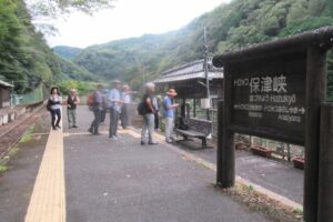 - トロッコ保津峡駅に到着、残念列車は先に出て 姿なし!