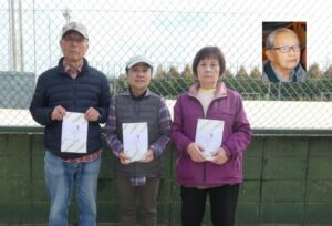 2024.11.27 グラウンドゴルフ同好会, 同好会 GG同好会日帰り親睦遠征を開催しました 団体戦優勝・2位・3位チームみなさん 団体 優勝:山本輝美 谷 克己 村田章子 徳田 保 団体2位:佐野美喜江・夜久とく子・稲原昇・古川清 団体3位:長谷川弘正・山本ツヤ子・嶋田八重子・三宅宏一 個人戦2位 古川清さん(左)、優勝 谷克己さん(中央)、3位 夜久とく子さん(右) 個人戦優秀者のみなさん 1 2 3 投稿者: takahashimutuo グラウンドゴルフ同好会, 同好会 コメント: 1 2024度北部会員懇談会を開催しました前の記事 北摂写真クラブと合同一泊撮影会を実施しました次の記事