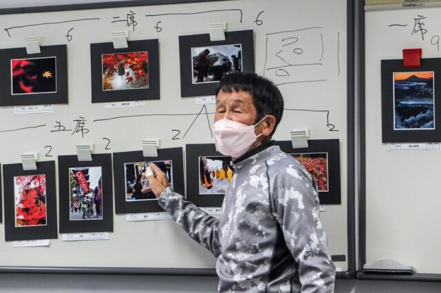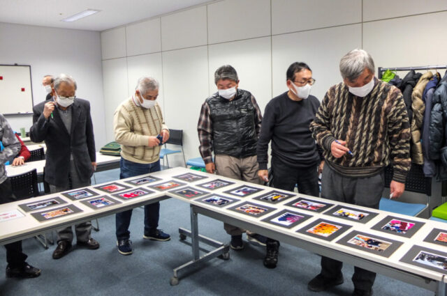 ・今月の撮影会作品は12月21日の「東寺終い弘法」での撮影作品です。自由作品は一人2枚出品でした。それをいつもの様に各人3作品選んで投票し互選を行いました。