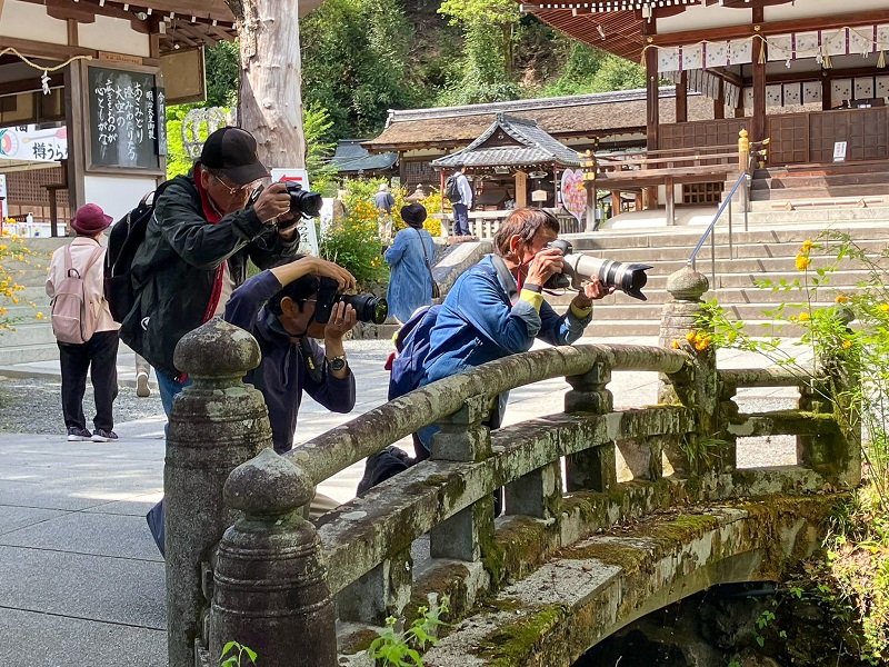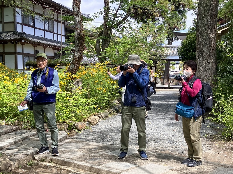 4月24日(木)山吹が満開の洛西総氏神松尾大社に会員16名が参加し、撮影会を開催しました。集合写真を撮影、撮影会担当者からの諸連絡の後、各自咲き誇る山吹を求めて散会し撮影を始めました。6月度の互選会が楽しみです。
