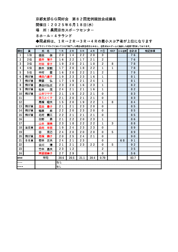 試合形式:第82回定例競技会ハンディキャップ戦(8ホール×4ゲーム)