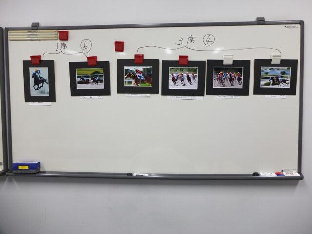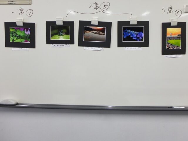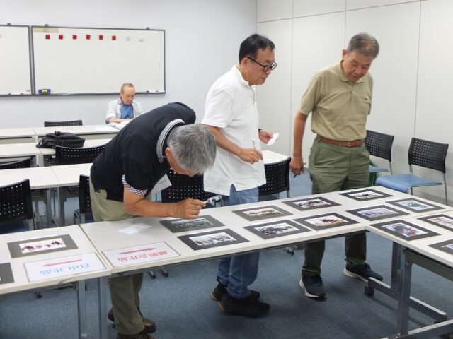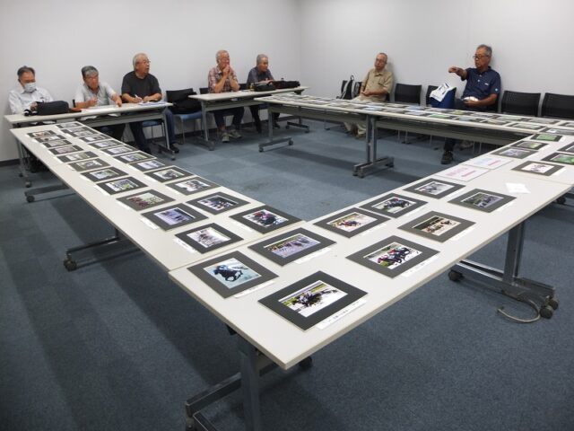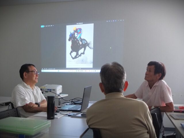 | ・互選会は6月20日、園田競馬場での撮影会作品2枚と自由作品2枚を並べ投票して実施しました。 ・投票集計後、入選作品を白板に掲示し、同時にプロジェクターで作品を壁に投射し入選者が作品紹介を行った後、選定者が意見を述べ八木さん、鎌田さんが寸評し、その場で画像調整や切り取りの指導を受けて画像を修正しました。さらにメンバーが意見を述べて盛り上がりました。 ・各人の評価意見を受けたい作品をプロジェクターで紹介し鎌田さん。八木さん、浦上さんから寸評と画像調整や切り取り等の指導を受けました。 ・大画面投射で見る作品は2L作品と違い、作者の狙い、構図、トリミング、映像調整を変えながら学習できる為、メンバー個々のレベルアップと同時に各人意見を出し合い有意義な会運営が図れました。 |