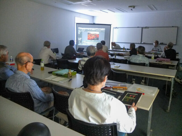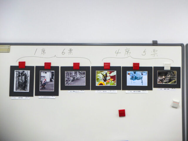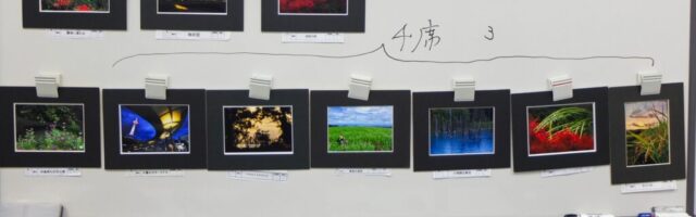 | ・今月の撮影会作品は、9月25日「琵琶湖 沖島」でした。沖島へは渡船に乗って渡り、島の風景を中心に撮影を行いました。互選会は撮影会作品、自由作品2枚ずつを並べ投票し実施しました。 ・投票集計後、入選作品を白板に掲示し、同時にプロジェクターで作品をスクリーンに投射し入選者が作品紹介を行った後、選定者が意見を述べ鎌田さん、八木さんが都度寸評し、その場で画像調整や切り取りの指導を受けて画像を修正しました。休憩後、GoogleDRIVEの各人作品のうち、評価意見を受けたい作品をプロジェクターで紹介し鎌田さん、八木さん、浦上さんから寸評と画像調整、切り取り等の指導を受けました。 ・大画面投射で見る作品は2L作品と違い、作者の狙い、構図、トリミング、映像調整を変えながら学習できる為、メンバー個々のレベルアップと同時に各人意見を出し合い有意義な会運営が図れました。 |