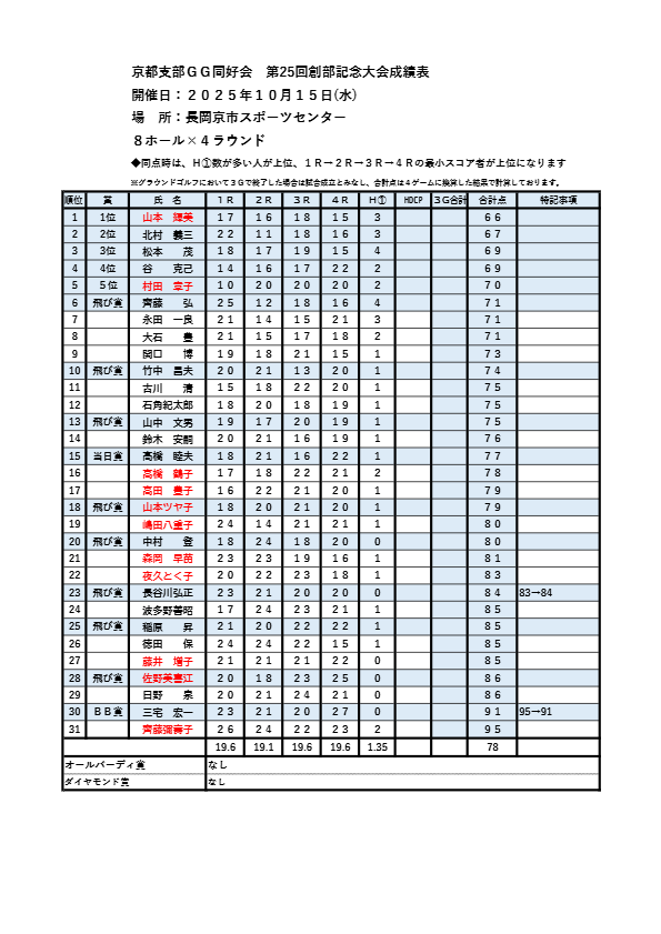 2025.10.19 アーカイブ, グラウンドゴルフ同好会, 同好会 第25回GG創部記念大会を開催しました。 ⇒GG同好会News 10月号に戻る 1 2 投稿者: takahashimutuo アーカイブ, グラウンドゴルフ同好会, 同好会 コメント: 0 京都歩こう会 第350回 栂ノ尾~清滝コース前の記事 10月度撮影会を開催しました次の記事