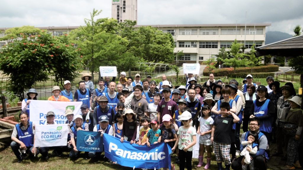 〇松本校長より挨拶(開校が110年の紹介等)、続いて主催者のグランドワーク福岡の大谷さん、パナソニックの前田さんより挨拶がありました。挨拶の後、先生による軽いゲームで身体と頭をほぐした。今日の作業内容の説明と役割分担(ハーブガーデン作り、ビオトープの清掃、他食事担当等)、リーダーの紹介と必要人数の招集等をして各自リーダーの指示で作業開始した。昼休み前に全員で集合写真撮影をした。松愛会も別に集合写真撮影をした。昼食後残っているハーブガーデンの花壇の補修等を済ませて解散した。