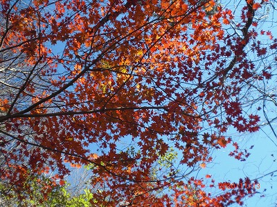 所々 紅葉している自然林の中を進んで行き、そしてジグザグの登山道を登る。