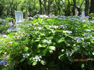 2021年6月の歩こう会は新型コロナウイルス感染での福岡県の緊急事態宣言が6月20日迄になり、又ワクチン接種も充分でなく用心して中止とさせて頂きました。せめてあじさいの開花状況を取材してご報告させて頂きたく当初予定日の6月9日(水)に放生会(ほうじょうや)で有名な筥崎宮に行き約3500株のあじさいがあるあじさい苑を見学してきました。今年は開花が早くて当日では満開が過ぎた様子でした。様子を写してきましたのでご一覧頂きましたら幸いです。