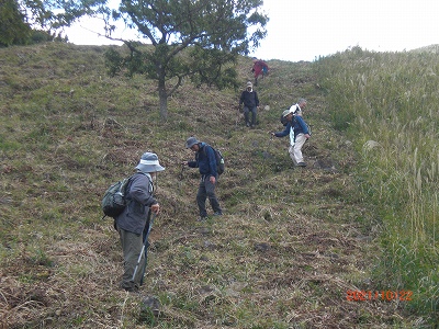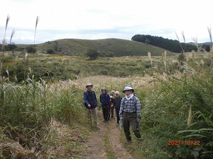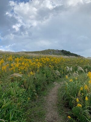 そして登山開始、ススキが風になびく中をゆっくりと登って行きました。
