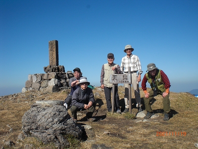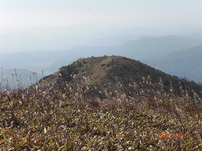 まずは 雨山(996m)を目指し、平坦に近い山道を 景色を見ながらゆっくりと進み雨山へ到着。雨山からは目的地の天山が目前に見えます。