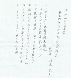例会作品は下記の通りです。久しぶりに90分の楽しい川柳談義が出来ました。