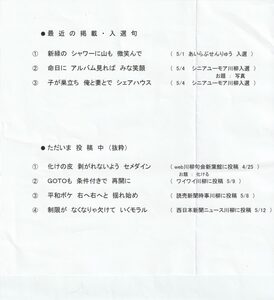 例会作品は下記の通りです。久しぶりに90分の楽しい川柳談義が出来ました。