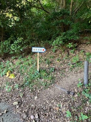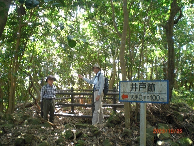 いたらしい。展望良し。戻って尾根道を進むと「三の丸」「堀切」「二の丸」「古井戸」