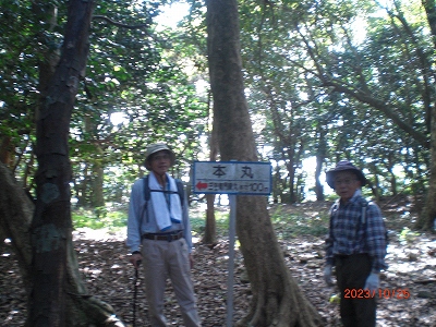 いたらしい。展望良し。戻って尾根道を進むと「三の丸」「堀切」「二の丸」「古井戸」