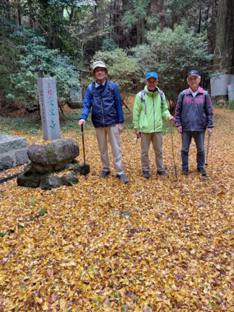 5分ほどで参道とお堂がが見えてきた、長谷寺である。イチョウの落ち葉がじゅうたんのようで綺麗です。さらに進むと貨物運搬用のレールが現れ、レールの反対側にはロープもあり傾斜がキツクなってきました。 レール沿いに登って行き30分強で山頂に到着。山頂は広場のようになっていてアスレチックやブランコ・トイレもあり、嘉麻市内の田園風景や嘉麻アルプス(古処山・屏山・江川岳・馬見山)などが一望できました。まだ時間が早いので、昼食は道の駅で摂ることにして往路を下山しました。
