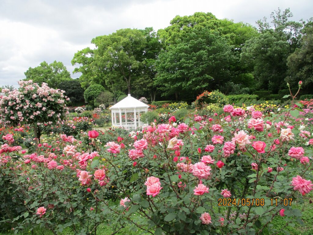 *ご参考)バラ園…春は約280種、1300株植えられ中にはクイーンエリザベス、ヘンリーフォンダ等著名人の名前のバラもあります。(記事、写真担当 利光)