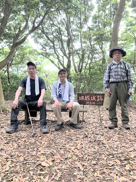 次に出てきたのは 堀越城跡(355m)があり、さらに進むと山頂である。約90分で到着です。