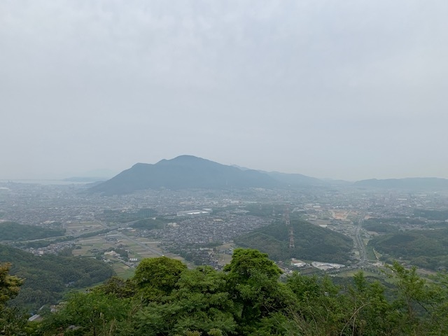 狭い山頂だが、晴れていれば展望は良さそうで、それでも 小倉の街・足立山・北九州空港が確認できた。 ここで昼食をとり、別ルートで下山へ。 急坂を慎重に下りて行き40分ほどで登山口に到着。