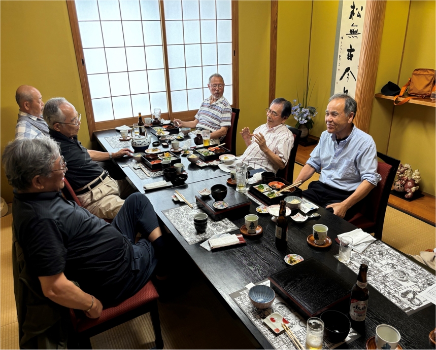 梅雨の最中にも拘わらず、会員の日ごろの行いが幸いして好天に恵まれた。県内各地から精鋭8名の会員で和やかな雰囲気の中懇談会を実施した。