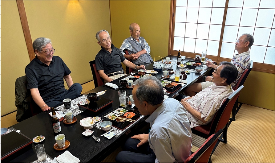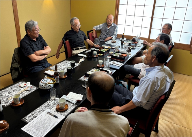 梅雨の最中にも拘わらず、会員の日ごろの行いが幸いして好天に恵まれた。県内各地から精鋭8名の会員で和やかな雰囲気の中懇談会を実施した。