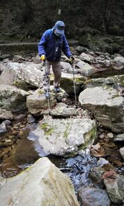 「氷瀑」が発生する「大日滝」は一般の方が通行する遊歩道から外れ、