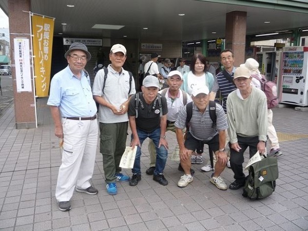 途中から雨が降って蒸し暑い中8名は楽しく歩き13時に津新町駅にゴール。