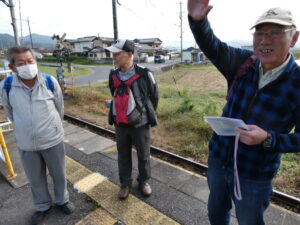 今回は出発地点で、洪水対策(線路の仕切り版)とか、徳川家康の「伊賀越え」地点、棚田での展望と記帳。