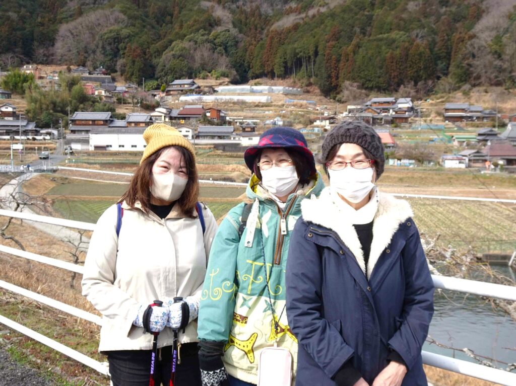 前日まで雪が降る天候でしたが、当日は曇り空で、梅の花が咲き始め、歩くのには最適でした。