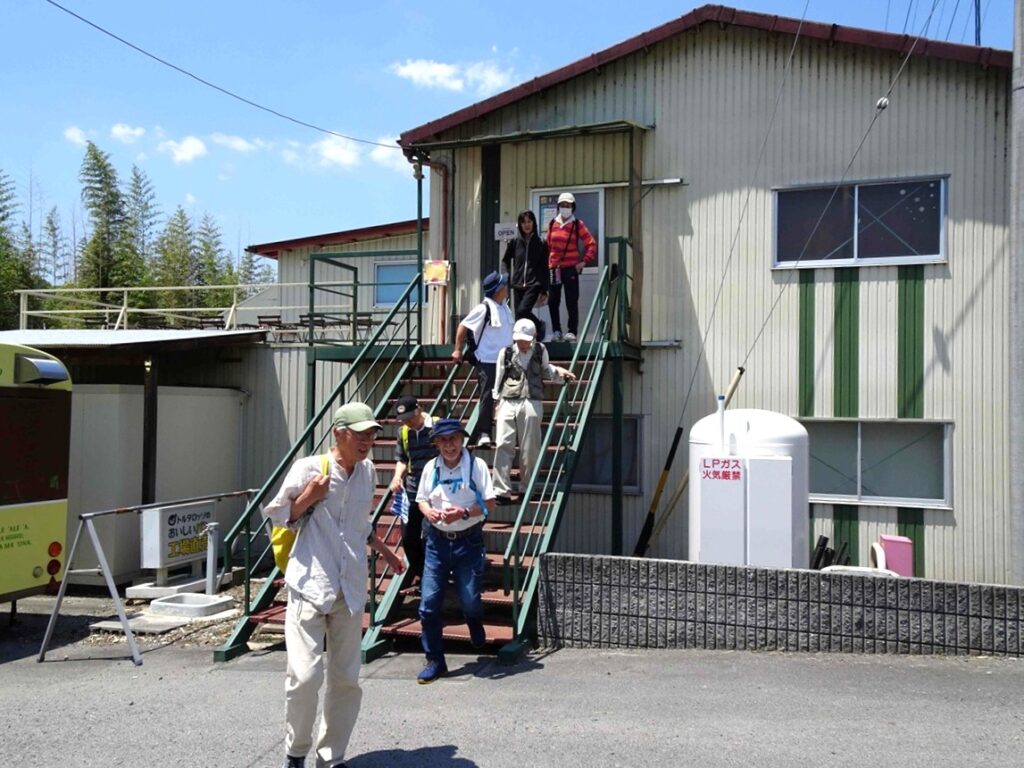 - ⑥途中でパン工場を発見!皆さん立ち寄って買い求め「満足顔」