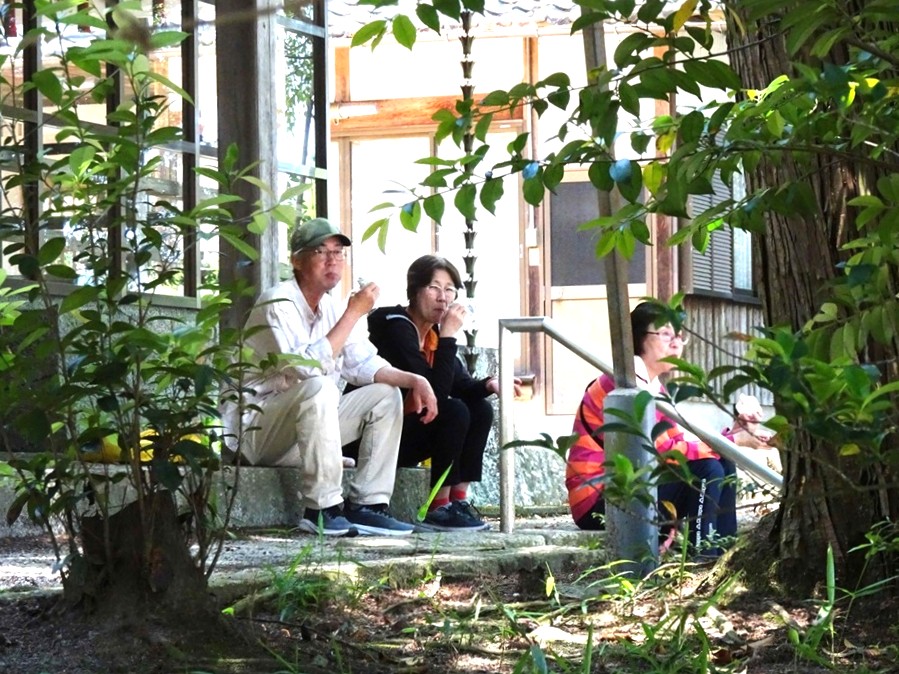 - ②普賢院を後に農業観光施設「モクモクパーク」付近での休憩時の一コマ