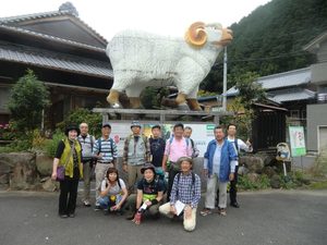 地域の守り神のお地蔵さんを回りました。途中でジャンボ干支の未に遭遇しました。