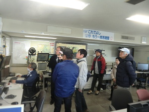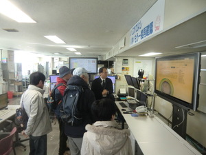 津地方気象台に到着。スタッフの方から昨今の異常気象に関する心構え、事前準備などのお話しの後、