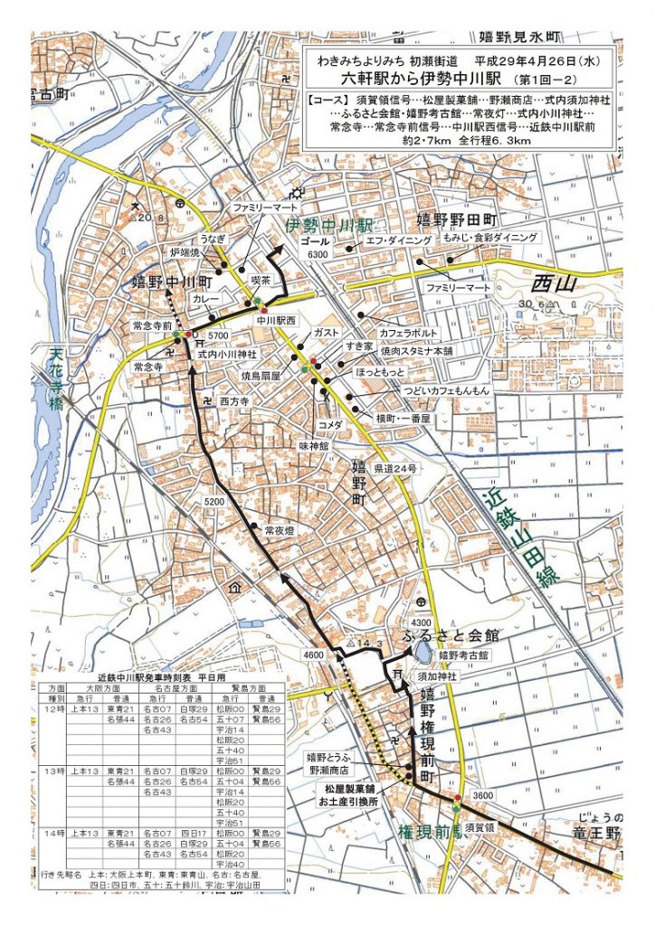 1.4月7日(火)は当初予定の南濃温泉から「初瀬街道」に変更致したく。