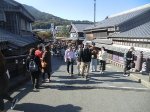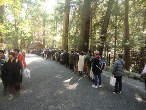 内宮に到着するもあまりの人出と行列に圧倒され、参拝は遠いところで