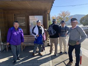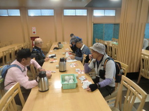 手を合わせ、本日のハイキングの特典のお菓子と湯茶の接待に預かり、