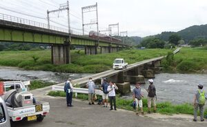 石橋駅跡近くには雲出川に架けられた沈下橋(潜水橋)を渡り