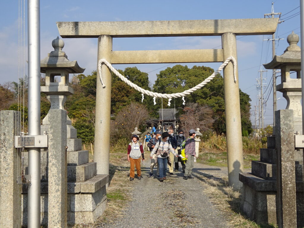 更に歩を進めて遥拝所跡、伊賀留我神社、浄恩寺を経由して垂坂公園でランチとなった。