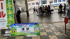 少し風が有ったが好天に恵まれJR津駅前の受付でミスクイーンと津駅長からウォーキングマップを受け取りコースにに沿って各ポイントを回った。