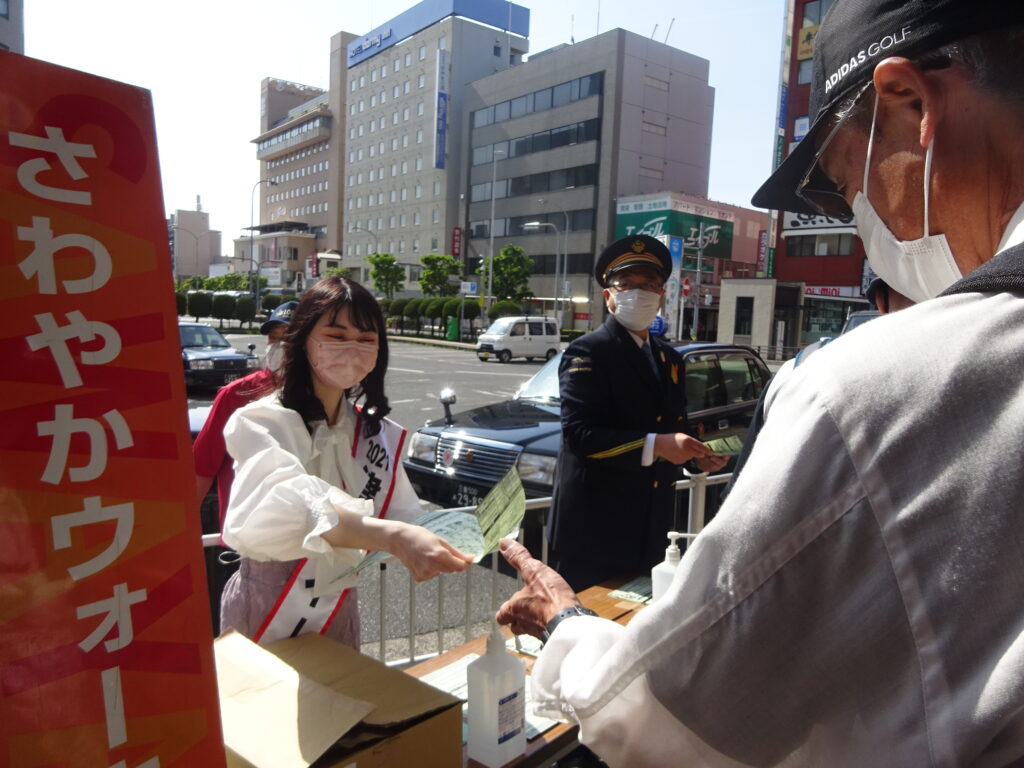 少し風が有ったが好天に恵まれJR津駅前の受付でミスクイーンと津駅長からウォーキングマップを受け取りコースにに沿って各ポイントを回った。