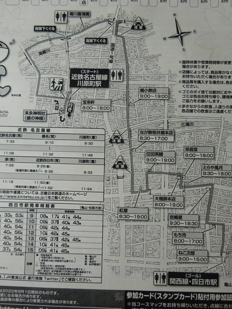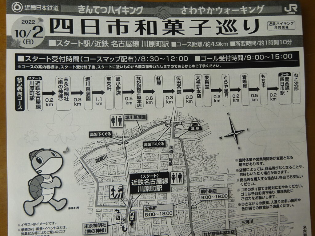 ◆行程: 近鉄川原町駅~末永神明社~海蔵川堤~嶋小餅店~笹井屋~栄昌堂~とらや風月~もち市~JR四日市駅(約5km)