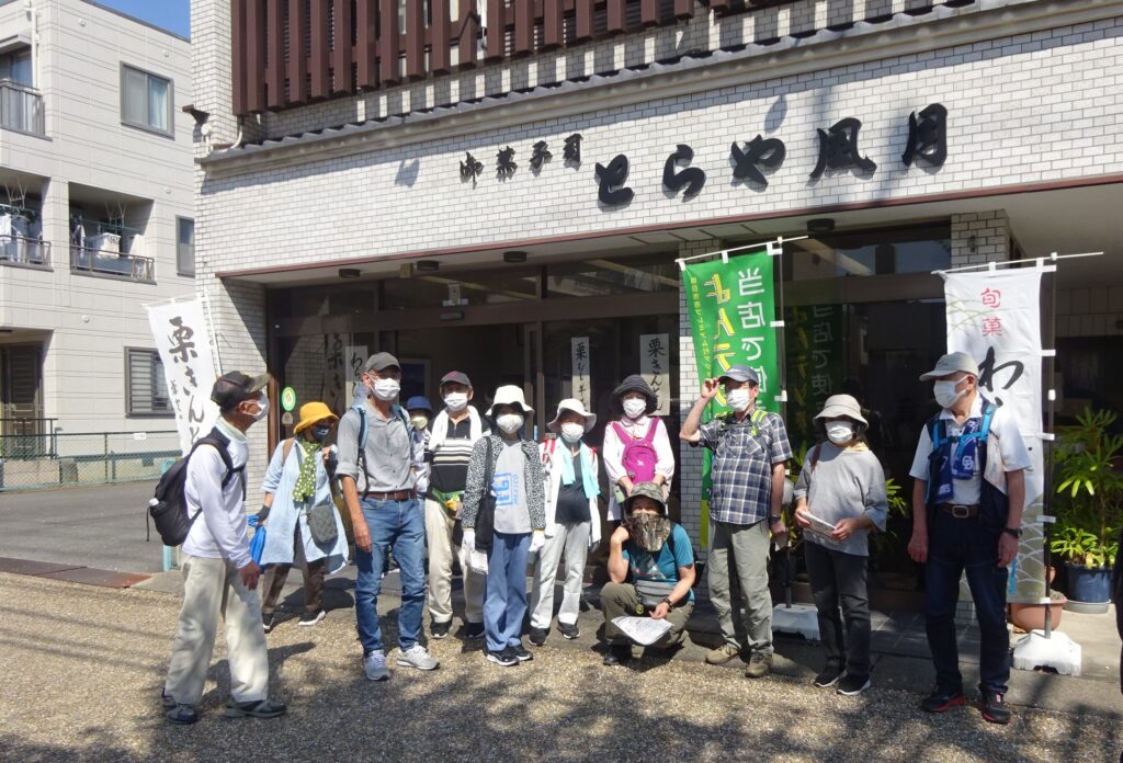 最高の秋晴れの下、近鉄川原町を元気よくスタート、ウォーキングマップに沿って行程を着々と進み、今回のうたい文句の和菓子のお店めぐりです。