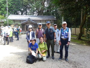 安濃公民館を出発し、戦前まで運航していた安濃鉄道線路跡をたどり、目標に安濃城の鳥居から参道の山道を登り主郭に到着。