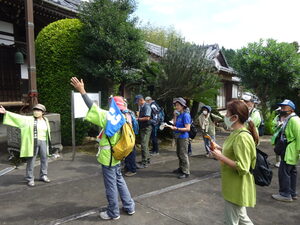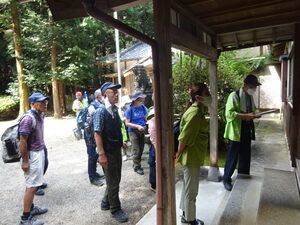 山麓の松原寺では聖徳太子立像、ひときわ目立つ鐘突堂など安濃のガイドの方に案内頂き、最後に公民館に戻り地域の民話を紙芝居で見学した。・・・関