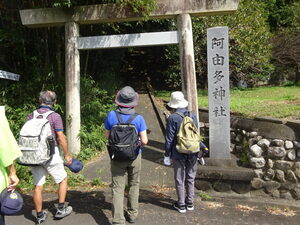 現在は阿由多神社として地域の神社が合祀されている。更に城郭を取り巻いている空堀、土塁など往時の足跡をたどった。