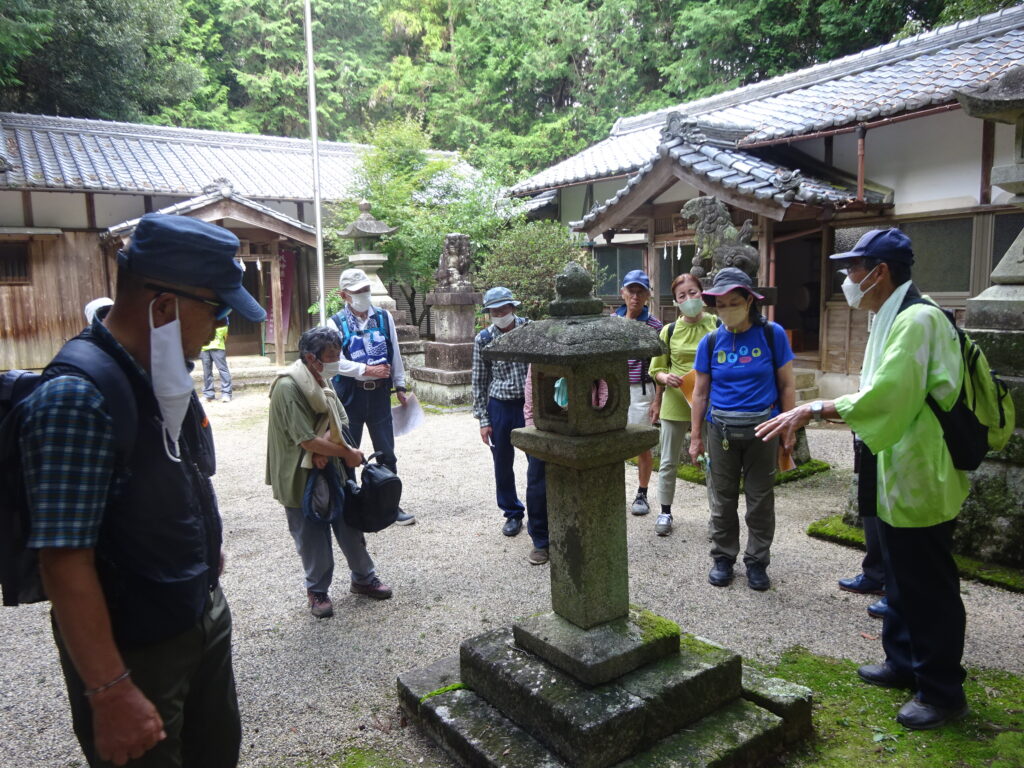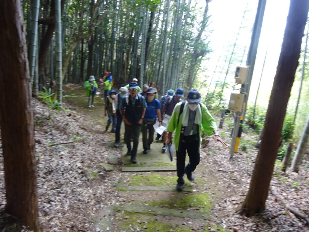 安濃公民館を出発し、戦前まで運航していた安濃鉄道線路跡をたどり、目標に安濃城の鳥居から参道の山道を登り主郭に到着。
