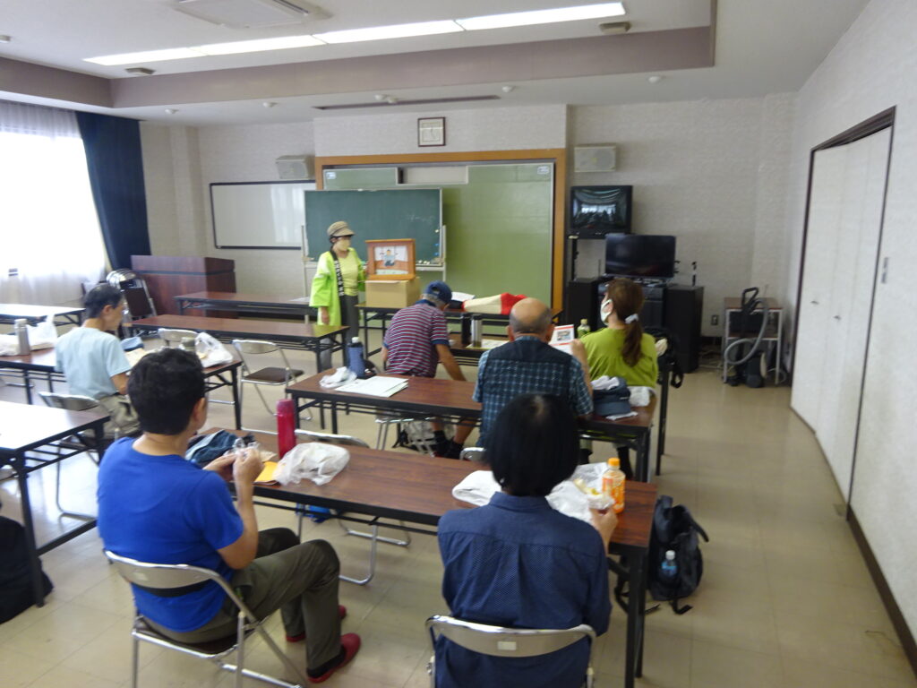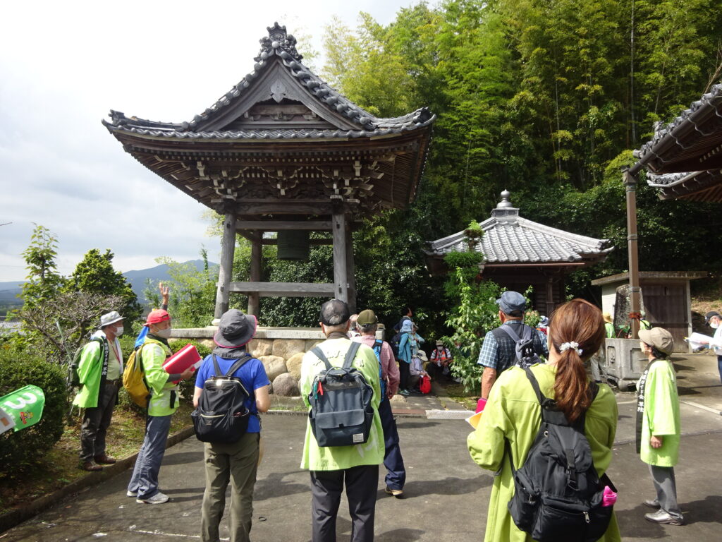 山麓の松原寺では聖徳太子立像、ひときわ目立つ鐘突堂など安濃のガイドの方に案内頂き、最後に公民館に戻り地域の民話を紙芝居で見学した。・・・関